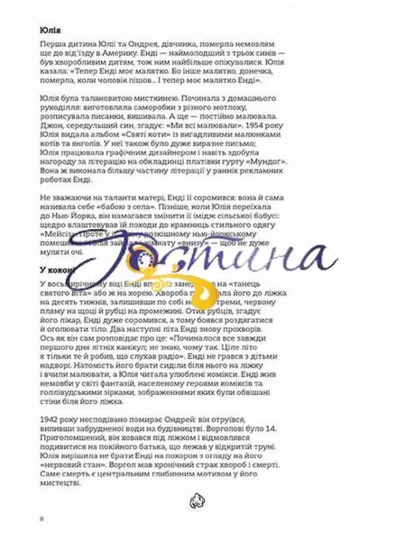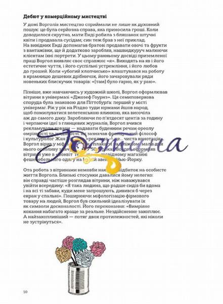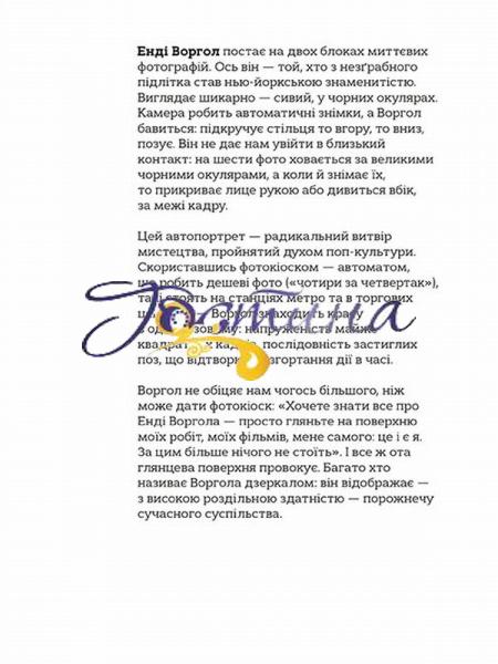 Енді Воргол є однією з найвідоміших та найбільш суперечливих особистостей у мистецтві другої половини XX століття. Протягом усього життя він створював безліч історій навколо своєї персони та став основоположником поп-арту, довівши, що мистецтво може бути прибутковим. Ілюстрований життєпис художника, неймовірні факти з його біографії і знамениті картини, розкажуть про життя та творчість митця-новатора. Для тих, хто захоплюється творчістю Воргола та цікавиться мистецтвом загалом.