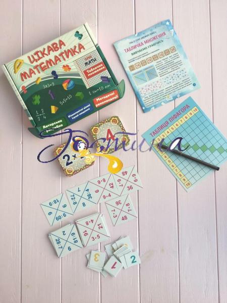 До набору додається таблиця Піфагора: одна сторона заповнена, друга – таблиця, яку можна заповнювати необмежену кількість разів. До гри додається фломастер.