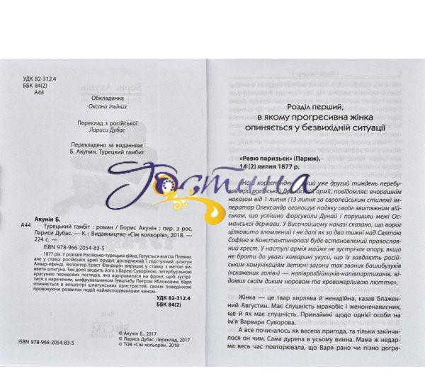 1877 рік. Російська імперія бере участь в жорстокій російсько-турецькій війні. Юна дівчина Варвара Суворова, петербурзька красуня передових поглядів і майже нігілістка, відправляється в зону бойових дій до нареченого. Почалася подорож як весела пригода, а потім Варвара раптом залишається одна в сумнівній придорожній корчмі, і випадкові попутники навіть грають на неї в карти ... Про пригоди Варвари Суворової на Балканах, що опинилася в самому центрі інтригуючих подій і разом з таємним агентом Російської імперії Ерастом Фандоріним викрили велику шпигунську змову, читайте в романі 'Турецький гамбіт'.