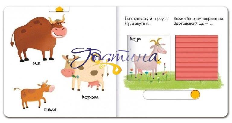Сторінки-цікавинки. Тварини на фермі Унікальні розвивальні книжки з рухомими елементами, які заохочують дитину до занять. - розвиваємо дрібну моторику; - знайомимося з довкіллям; - розвиваємо навички мовлення, лічби, пам’ять увагу, розширюємо словниковий запас.