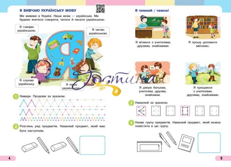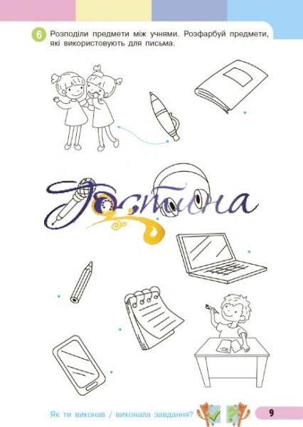 Зошит містить завдання добукварного періоду (позначені кнопкою синього кольору); завдання букварного періоду (позначені кнопкою жовтого кольору); завдання з розвитку критичного, логічного, творчого мислення, завдання підвищеної складності (позначені кнопкою червоного кольору). Матеріал подано в цікавій і доступній формі з урахуванням психологічних особливостей першокласників.