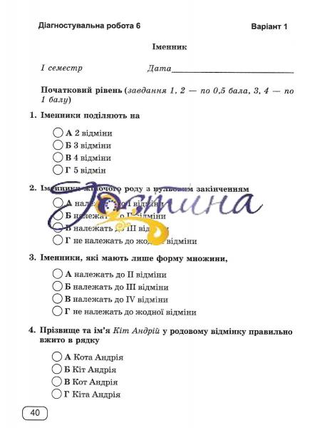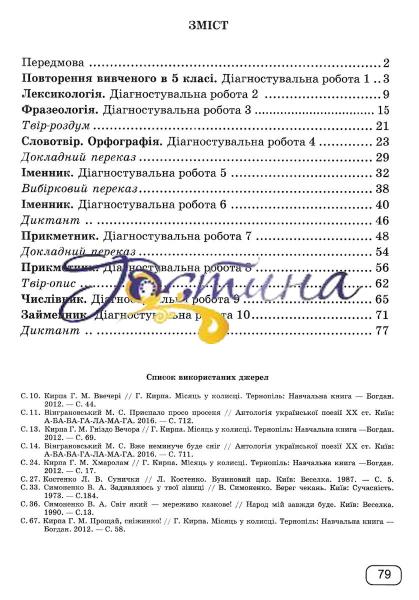 Зошит укладено відповідно до модельної навчальної програми «Українська мова. 5–6 класи» для закладів загальної середньої освіти (автори: Заболотний О. В., Заболотний В. В., Лавринчук В. П., Плівачук К. В., Попова Т. Д.). Він призначений для діагностування рівня опанування тематичного матеріалу. Для учнів 6 класу, учителів української мови.