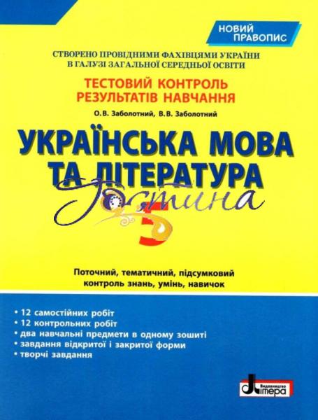 Посібник призначено для проведення поточного й контрольного оцінювання навчальних досягнень учнів з української мови та літератури в 5 класі. Зокрема, передбачено виконання 12 контрольних і 12 самостійних робіт. Укладено відповідно до чинних програм з обох предметів для 5-9 класів закладів загальної середньої освіти та правопису 2019 року.