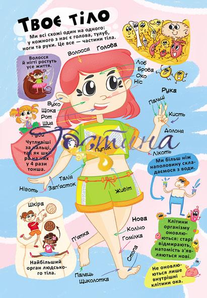 'Усе про твоє тіло' – книга із секретними віконцями. Дізнайся, як влаштоване твоє тіло! Із чого утворений наш організм? Як ми дихаємо? Де перетравлюється їжа? Доступно та цікаво ми розповімо малюкові про те, як діє його тіло. А кумедні малюнки й секретні віконця перетворять читання на захопливе заняття.