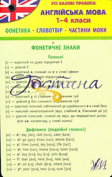 Довідник «Усі базові правила, Англійська мова. 1–4 класи» не лише містить основні відомості з фонетики, словотвору та граматики зі зрозумілими прикладами, а й має зручний формат: компактні картки скріплені таким чином, що їх легко розгортати віялом, знову згортати й навіть можна використовувати як закладку для підручника. Отже, потрібна учневі інформація буде завжди під рукою.
