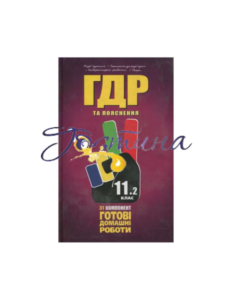 Усі ГДР 11 кл Т.2 + Пояснення 2014 р. «УСІ ГДР 11.2» (11 клас. ТОМ 2) — універсальне видання для всіх шкіл України з українською мовою навчання. Книга Забезпечує виконання письмових домашніх робіт з математики, фізики, хімії за підручниками рівня стандарту, з української мови за підручниками академічного та профільного рівнів, а також з інформатики, біології, англійської, російської та німецької мов, пропонує зразки творчих робіт з української та зарубіжної літератур і розвитку мовлення та подає в окремих блоках пояснення та теоретичні обґрунтування, на яких базуються розв'язання.Потребує додаткового придбання книги «УСІ ГДР 11.1» (11 клас. ТОМ 1) для підготовки домашніх робіт, за підручниками академічного та профільного рівнів з алгебри, геометрії, фізики, хімії, за підручником академічного і рівня стандарту з астрономії та підручниками рівня стандарту з української мови.