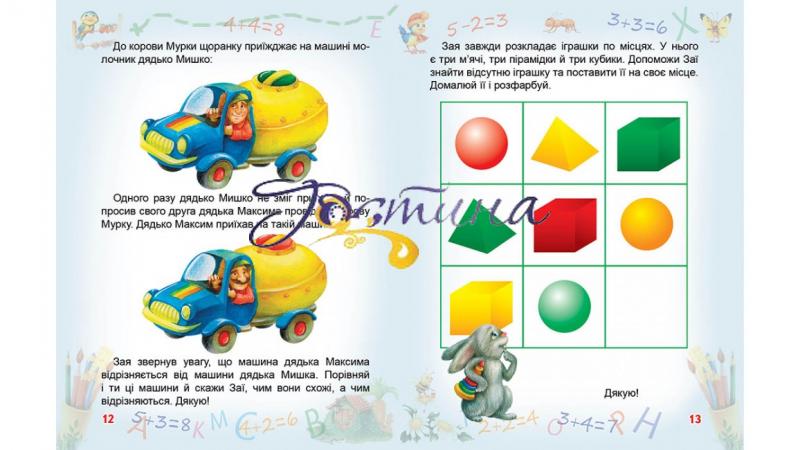 Матеріал у цій книжці — розвивальні вправи для дитини 3–4 років — подано в нестандартному для навчального посібника жанрі. Збірник тестів пропонує: • знайомство з порядковою лічбою, простими геометричними фігурами, літерами;  • завдання на логічне мислення, формування навичок письма і малювання, побудову правильної мови.