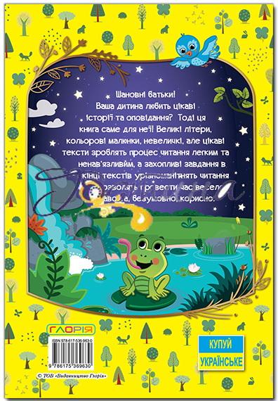 Шановнi батьки! Ваша дитина любить цікаві історії та оповідання? Тоді ця книга саме для неї! Великі літери, кольорові малюнки, невеличкі, але цікаві тексти зроблять процес читання легким та ненав’язливим, а захопливі завдання в кінці текстів урізноманітнять читання та дозволять провести час весело, цікаво та, безумовно, корисно. Кожна сторінка – це ребус для тренування твоєї уваги, спостережливості та уяви.