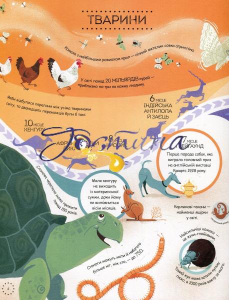 Книга містить оптимальний набір цікавих фактів для знайомства з різними галузями знань. Інформацію надано невеликими блоками та яскраво проілюстровано, тому вона легко запам'ятовується.
