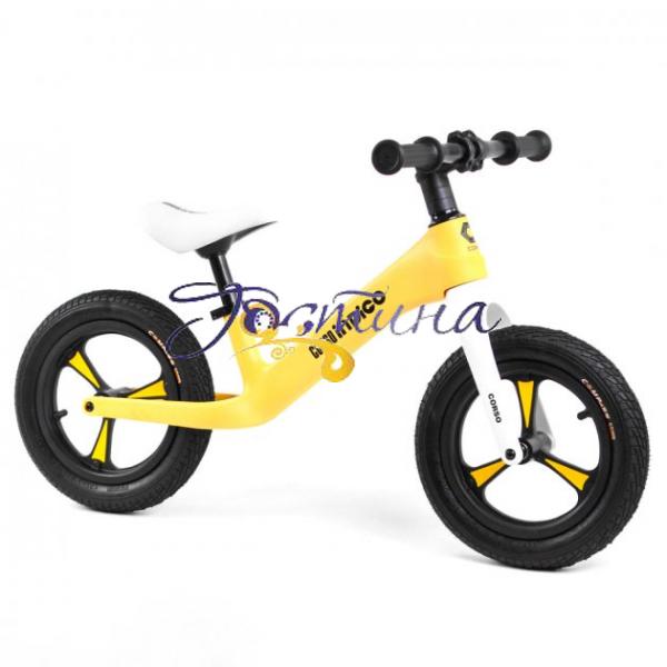 Рама та вилка беговела виконані з ударостійкого нейлону (армованого скловолокном). Конструкція з такого матеріалу має меншу масу в порівнянні зі сталевою і більшу пружність, в порівнянні з алюмінієвою, не піддається корозії. Широке м'яке сидіння регулюється заввишки від 34 до 41 см. Надувні колеса на підшипниках розміром 12 дюймів відмінно впораються з амортизацією при їзді по міській бруківці та стежці в парку, а їх ширина в 2,125 дюйма дає додаткову стійкість, що особливо важливо для маленьких дітей, які тільки освоюють біговел. Характеристики беговела CORSO Indigo: винос керма: алюміній; кермо сталеве, ширина: 39 см; диски нейлонові; покришки Compass; матеріал грипс: гума; сидіння м'яке зі шкірозамінника; вага беговела: 3,5 кг; Упаковка: коробка.