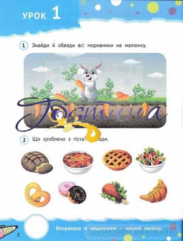 Ваша дитина обов'язково зацікавиться завданнямиз цієї книжечки і проведе час корисно і з задоволенням.Під час веселих уроків малюк:— знайомитиметься зі світом природи;— розвиватиме мислення;— визначатиме подібності і відмінності;— вивчатиме геометричні фігури;— розвиватиме творчі здібності. А ще кмітливе дошкільнятко зможе самостійно оцінити результати своєї праці: виконавши завдання — наклеїть наліпку!Розмір 19,5 х 25,5 см