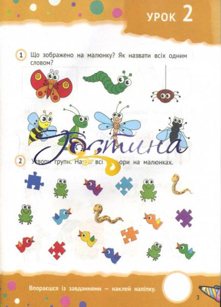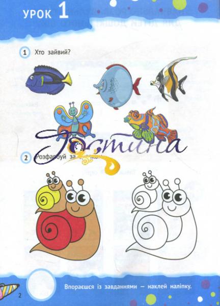 Ваша дитина обов'язково зацікавиться завданнямиз цієї книжечки і проведе час корисно і з задоволенням.Під час веселих уроків малюк:— знайомитиметься зі світом природи;— розвиватиме мислення;— визначатиме подібності і відмінності;— вивчатиме геометричні фігури;— розвиватиме творчі здібності. А ще кмітливе дошкільнятко зможе самостійно оцінити результати своєї праці: виконавши завдання — наклеїть наліпку!Розмір 19,5 х 25,5 см