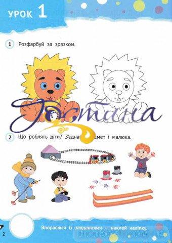 Ваша дитина обов'язково зацікавиться завданнямиз цієї книжечки і проведе час корисно і з задоволенням.Під час веселих уроків малюк:— знайомитиметься зі світом природи;— розвиватиме мислення;— визначатиме подібності і відмінності;— вивчатиме геометричні фігури;— розвиватиме творчі здібності. А ще кмітливе дошкільнятко зможе самостійно оцінити результати своєї праці: виконавши завдання — наклеїть наліпку!Розмір 19,5 х 25,5 см