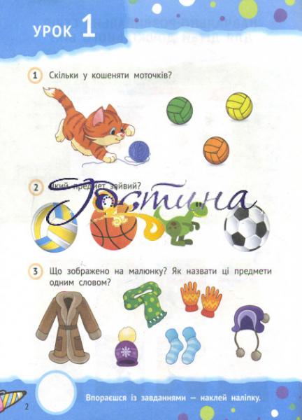 Ваша дитина обов'язково зацікавиться завданнямиз цієї книжечки і проведе час корисно і з задоволенням.Під час веселих уроків малюк:— знайомитиметься зі світом природи;— розвиватиме мислення;— визначатиме подібності і відмінності;— вивчатиме геометричні фігури;— розвиватиме творчі здібності.