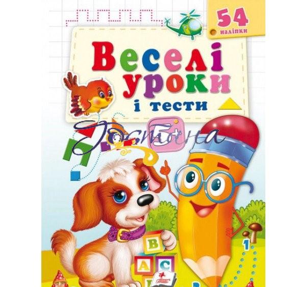 Видання для організації дозвілля "Веселі уроки і тести 5+. Щеня" серії "Веселі уроки і тести" містить 54 наліпки, 36 завдань і тестів. Призначено для дітей дошкільного віку.
