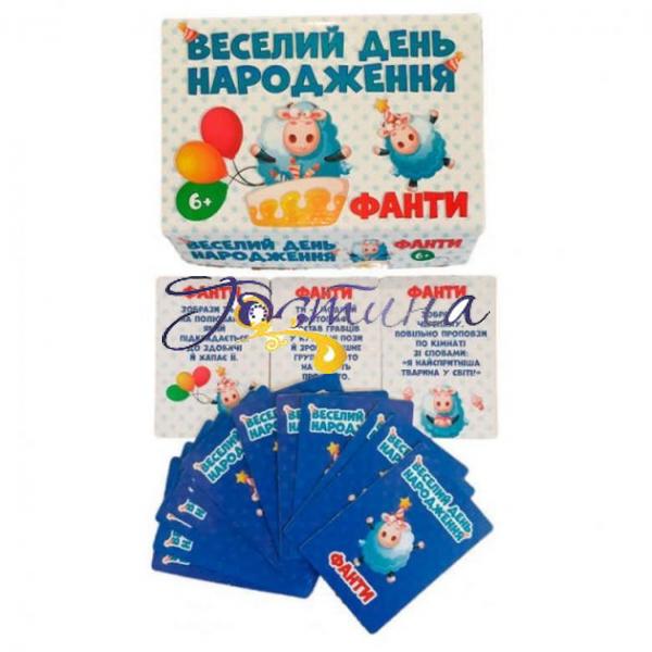 Фанті. Гра, яку можна сміливо брати з собою на вечірку з будь-якою компанією. Яким має бути справжній День народження? Звичайно, веселим, яскравим і незабутнім! З прикольними фантами ви зможете привітати іменинника і від душі повеселитися. Як грати: покладіть картки на стіл завданнями вниз, гравці по черзі тягнути картки і виконують веселі завдання-фанти. Виявіть собі! Танцюйте, стрибайте, кривляйтеся, проводьте годину та веселіться від душі. Склад набору: картки для гри – 20 шт.