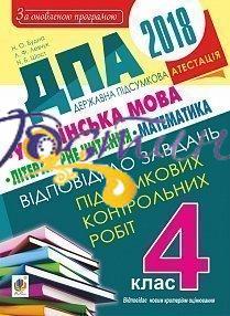 Посібник містить відповіді до завдань з української мови, літературного читання, математики, рекомендованих МОН України для державної підсумкової атестації учнів 4-х класів загальноосвітніх шкіл, вміщених у збірниках: * ДПА. Українська мова. Підсумкові контрольні роботи: 4 кл. / Н.Б. Шост. — Тернопіль: Навчальна книга – Богдан. — 80 с. * ДПА. Літературне читання. Підсумкові контрольні роботи: 4 кл. / Н.Я. Походжай. — Тернопіль: Навчальна книга – Богдан. — 64 с. * ДПА. Математика. Підсумкові контрольні роботи: 4 кл. / Н.О. Будна. — Тернопіль: Навчальна книга – Богдан. — 80 с. Пропонуються відповіді до тестових завдань закритого типу; короткі письмові відповіді до завдань відкритого типу; зразки розгорнутих відповідей до творчих завдань з української мови та літературного читання і розв’язки задач з математики з поясненнями та повною відповіддю. Посібник допоможе четвертокласникам добре підготуватися до державної підсумкової атестації.