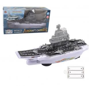 На палубі можна побачити обтічний надбудову, повітряну авіацію у вигляді винищувачів та інше бойове оснащення.
