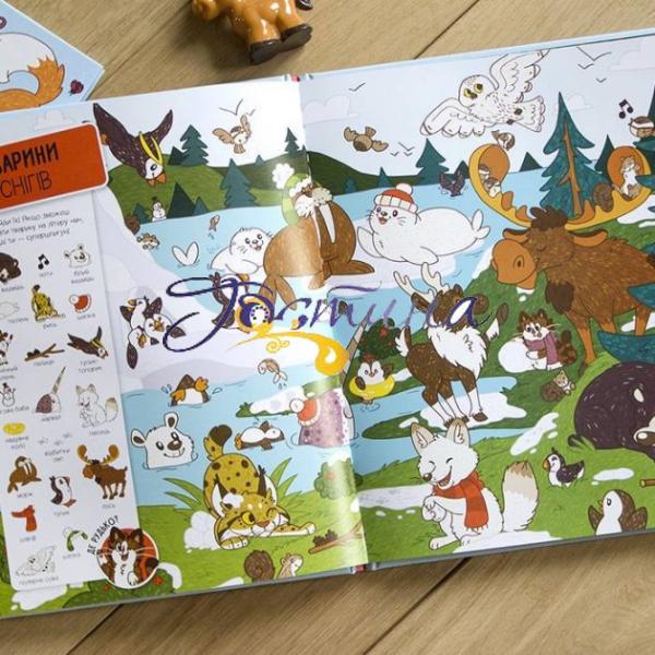Відмінний популярний віммельбух, зі смисловим наповненням! Кожен розворот запрошує в захоплюючу подорож і знайомить з тваринним світом джунглів, пустелі, лісу, степу, снігів, морів і океанів. Можна навіть зазирнути в пристрій підземних норок і дізнатися, хто ж там живе! У цій книзі дитина не тільки знайомиться з тваринами, але і отримує завдання відшукати цих тварин, а ще головного героя книги - кошеня Рижика. Книга містить яскраві ілюстрації і виконана на крейдованому папері.