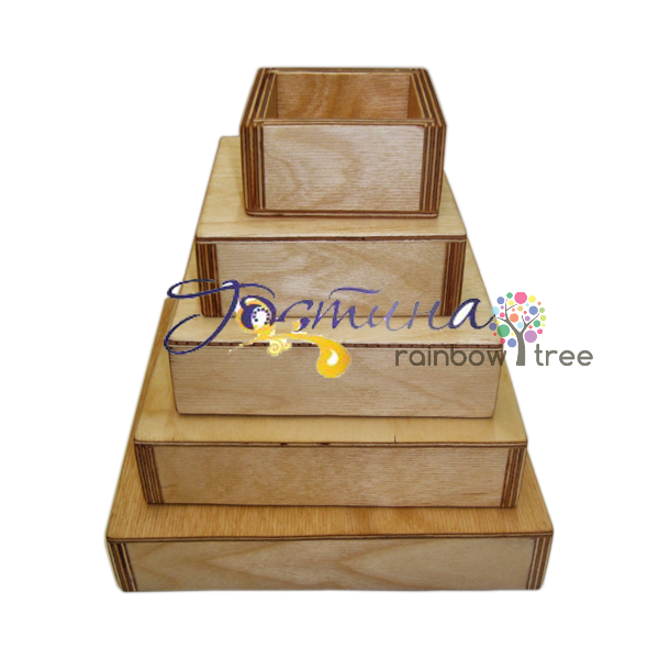 Опис матеріалу: Даний набір складається з п'яти дерев'яних коробочок різного розміру. Коробочки вкладаються одна в іншу від більшої до меншої.