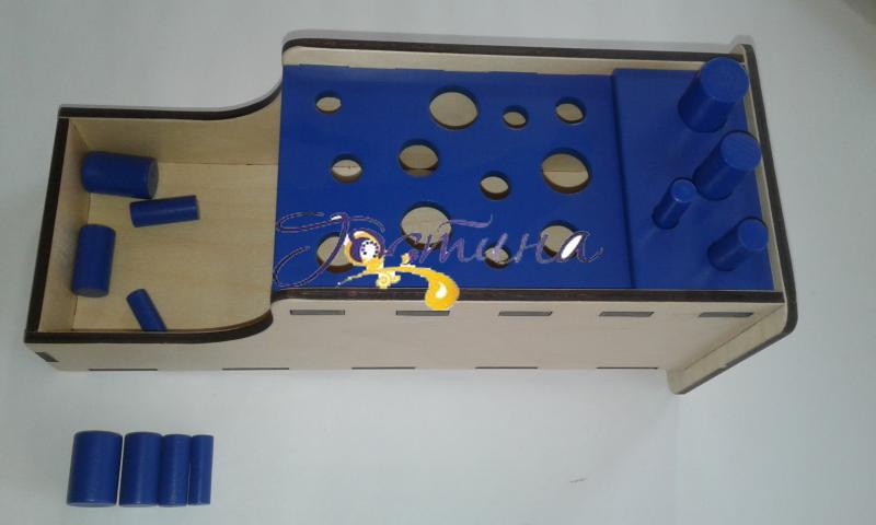 Опис матеріалу: Матеріал складається з коробки з підставкою і отверто для циліндрів, а також циліндрів різного діаметру.