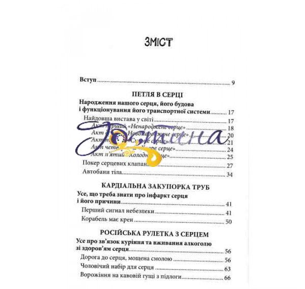 Як підтримувати серце в тонусі? Чи залежить його робота від харчування і які продукти варто виключити зі свого щоденного раціону? Як попередити інфаркти, інсульти та інші кардіологічні захворювання? Чому нещасливе кохання насправді здатне розбити серце? Як нашому «мотору» вдається невтомно працювати без відпустки та вихідних? Чому серце називають «командним гравцем»? Які наші звички допомагають, а які шкодять серцю? Автор відповідає на всі ці та багато інших запитань простою мовою, чергуючи анатомічні й фізіологічні описи та теорію з цікавими оповідками, практичними порадами і кумедними випадками з власного життя.