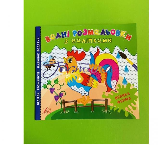 Оригінальні розмальовки з великими картинками та товстими кольоровими контурами неодмінно сподобаються малюкам, адже щоб розфарбувати різних свійських тварин та птиц, не знадобляться ні олівці, ні фарби. Потрібно лише змочити кисть водою, провести ним по картинці — і вона вмити стане кольоровою! Всі сторінки з перфорацією, тому дитина зможе легко витягнути малюнки з книжки та подарувати рідним чи друзям або ж влаштувати справжню художню виставку. Приємним бонусом буде набір великих кольорових наліпок, якими можна прикрасити будь-що. Видання подарує дитині захопливе дозвілля і радість від творчості!