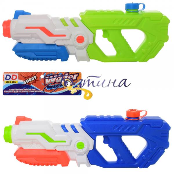 Водяний бластер M 6051 помпа, розмір великий, 47, 5 см, 2 кольори, в кульку. Розмір - 25-58-6см, Матеріал - пластмаса, Тип упаковки - кульок.
