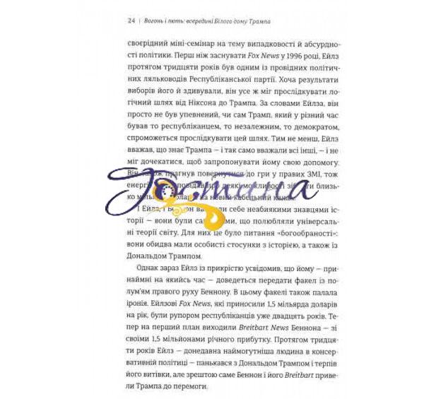 «Вогонь і лють» стала бестселером вже у день виходу. Написана за результатами 200 інтерв’ю, книжка розкриває подробиці роботи адміністрації президента США. Чому перемога на виборах стала для Дональда Трампа несподіванкою? Чи осилив він конституцію США? Чому підлеглі спілкуються з Трампом через телешоу? Як запускати ракети за допомогою PowerPoint? Хто планує стати першою президенткою США? Чому Трамп харчується у Макдоналдзі та спить окремо від дружини? Чим закінчиться війна, оголошена американським лібералам? У чому секрет зачіски Трампа та феномен «ери трампізму»? Майкл Вулфф дає відповіді на усі ці запитання.