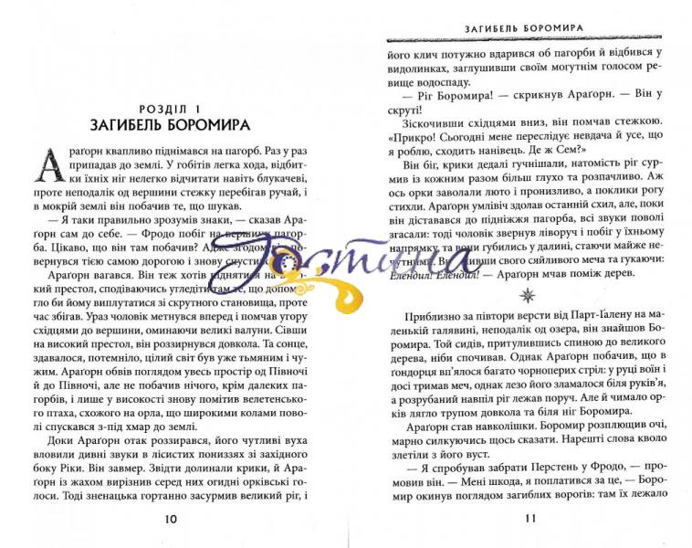 Величний твір Дж. P. P. Толкіна поєднує у собі героїчну романтику і наукову фантастику. Це захопливий пригодницький роман і, водночас, сповнена глибокої мудрості книга. Почергово то комічна й домашня, то епічна, а подекуди навіть страхітлива оповідь переходить через нескінченні зміни чудово описаних сцен і характерів. Основою цієї історії є боротьба за Перстень Влади, що випадково потрапив до рук гобіта Більбо Торбина. Саме цього Персня бракує Темному Володареві для того, щоби завоювати увесь світ. Тепер небезпечні пригоди випадають на долю Фродо Торбина, бо йому довірено цей Перстень. Він мусить залишити свій дім і вирушити у небезпечну мандрівку просторами Середзем’я аж до Судної Гори, що розташована в осерді володінь Темного Володаря. Саме там він має знищити Перстень і завадити втіленню лихого задуму.