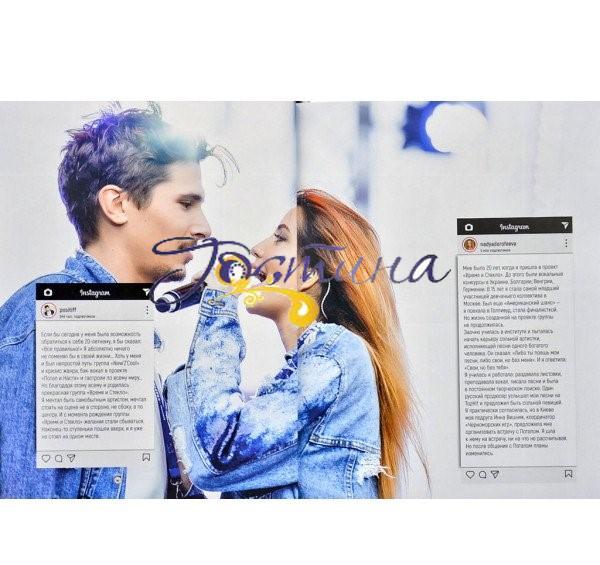 "Время и Стекло" – музичні хітмейкери і трендсеттери сучасного українського шоу-бізнесу, які ставали кращим поп-гуртом п’ять років поспіль та першими ставили світові рекорди на YouTube. Колектив став першим російськомовним гуртом у всесвітньовідомій танцювальній грі "Just Dance" з піснею "Имя 505", отримав премії: M1 Music Awards, YUNA, РУ-ТВ, TOP HIT Music Awards, та провів 4 мега-успішних світових турів. Instabook "Время и Стекло" - це унікальна сторінка гурту в форматі книги. Надя і Позитив діляться найяскравішими спогадами за 10 творчих років: від першого концерту та знакового "Имя 505" до масштабного VISLOVO і прощального туру "Последний танец".