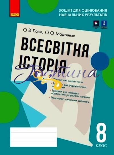 Посібник містить завдання для формувального, тематичного та річного контролю результатів навчання учнів 8 класу закладів загальної середньої освіти з курсу всесвітньої історії. Кожна робота представлена у двох варіантах (річний контроль - у трьох). Видання також надає можливість онлайн-тестування.