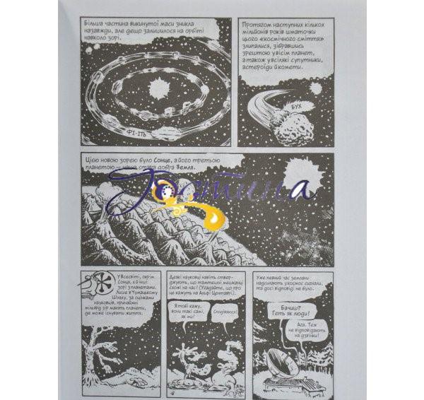 Історія людства в оригінальному потрактуванні Ларрі Ґоніка не має собі рівних. Починаючи з теорії Великого вибуху й «еволюції всього», книжка охоплює понад три мільярди років — від виникнення клітинних форм життя й наступних епох викопної флори та фауни, включаючи царство динозаврів, й аж до появи перших гомінідів.