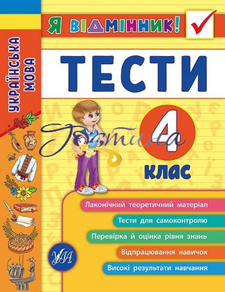 Ця книга "Українська мова. Тести 4 клас" допоможе учням першого класу успішно підготуватися до підсумкових тестових завдань з української мови в молодшій школі. У виданні міститься довідковий матеріал до кожної теми, підготовчі вправи (завдання з відкритою формою відповіді та творчі завдання), а також тематичні тести. Кожен розділ упорядковано відповідно до нової програми Міністерства освіти і науки України.