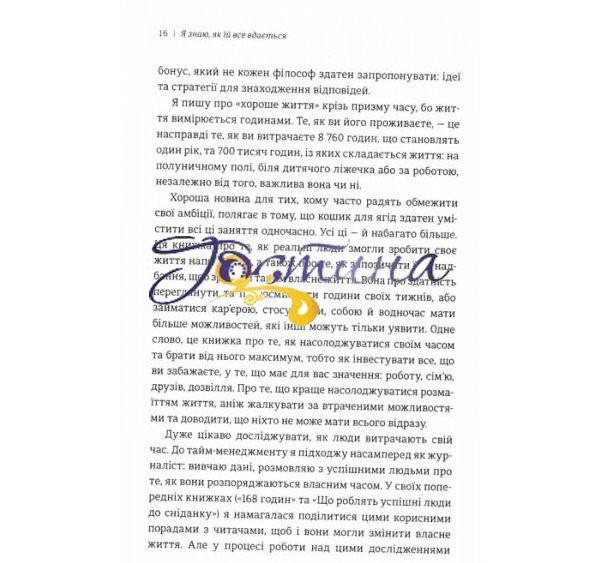Експертка тайм-менеджменту Лора Вандеркам вирішила не сліпо довіряти балачкам, а зібрати перевірені дані. Вона проаналізувала хронометражі з життя жінок, які заробляють щонайменше $100 000 на рік, і на прикладі сотень історій довела: не варто відмовлятися від того, що ви дійсно любите, потрібно лише правильно організовувати свій час.