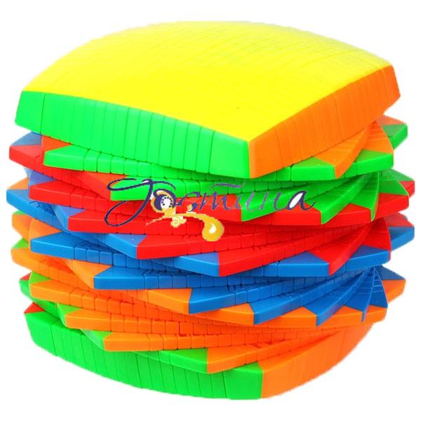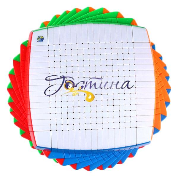 Найбільший серійний куб 17х17. Усередині досить складний механізм і саме тому головоломка вийшла такою опуклою. Досить масивний та важкий куб важить 3,5 кг. Тим не менш, він крутиться дуже легко, як для таких габаритів. Це не тільки найбільший, але й один із найскладніших кубів із існуючих. Навіть професійні спідкубери витрачають на його складання довгі години. Якщо говорити про ціну, то вона виправдовує себе: складний інженерний винахід та гідна прикраса для найдосвідченіших любителів головоломок.
