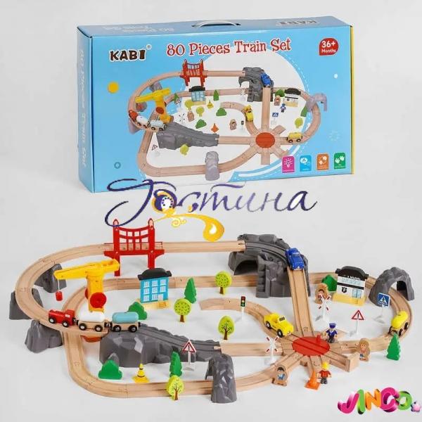 Залізниця C 46265 (4) 80 елементів, поїзд, 2 вагони, 2 машинки, ігрові фігурки, будівлі, декорації, в коробці