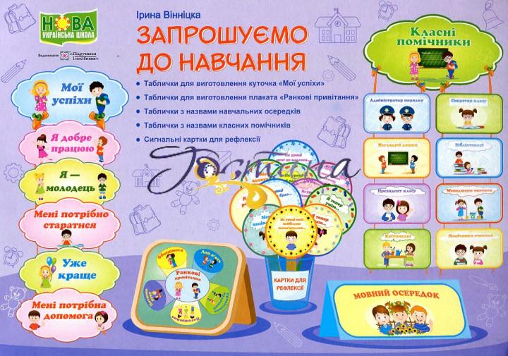 Однією зі складових Нової української школи є створення сучасного освітнього середовища, зокрема багатофункціональних гнучких просторів, що сприяють різним формам роботи, мотивують до навчання. Комплект «Запрошуємо до навчання» буде корисним для вчителів початкових класів, допоможе облаштувати комфортне, яскраве освітнє середовище.