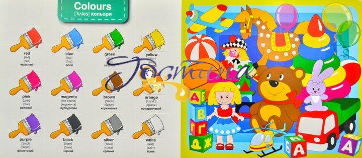 Маленькі діти люблять досліджувати навколишнє середовище, відчиняти різні дверцята та шухляди, відкривати для себе щось нове. Тому ця картонка «Зазирни у віконце. Кольори. Англійська мова» має всі шанси дуже сподобатися малюкам. Ілюстрований словничок ідеально пасує дітям, які розпочинають вчити іноземну мову. Аж 70 прихованих віконець із несподіванками, яскраві малюнки, цікаві сюжети, підписи англійською із транскрипцією та підказкою щодо правильної вимови, а ще переклад українською мовою до всіх об’єктів – все це є цій картонній книзі.Розмір 23 х 20,5 х 0,5 див.