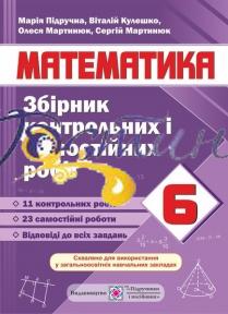навчальних досягнень учнів 6 класу закладів загальної середньої освіти й містить 11 контрольних і 23 самостійні роботи, які охоплюють усі теми курсу математики 6 класу. Він відповідає чинній програмі й підручникам з математики.