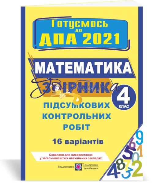 Посібник містить 16 варіантів підсумкових контрольних робіт з математики. Роботи складено відповідно до вимог чинної програми з математики для 1–4 класів, «Інструктивно-методичних матеріалів щодо контролю та оцінювання навчальних досягнень учнів початкових класів загальноосвітніх навчальних закладів» і підручників з математики.