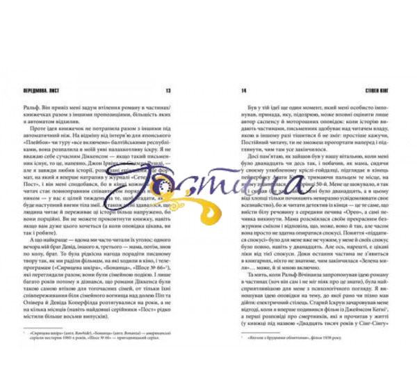 Стівен Кінг — шалено популярний американський письменник, і майже кожний його твір стає світовим бестселером. Його справедливо називають Королем жахів і Продавцем страхів — тому що мало хто вміє лякати так, як він. Кажуть, якось психіатри наполегливо рекомендували йому пройти курс лікування. «Навіщо? Я і так лікуюся. А потім продаю вам свої страхи»,— з усмішкою відповів Кінг.