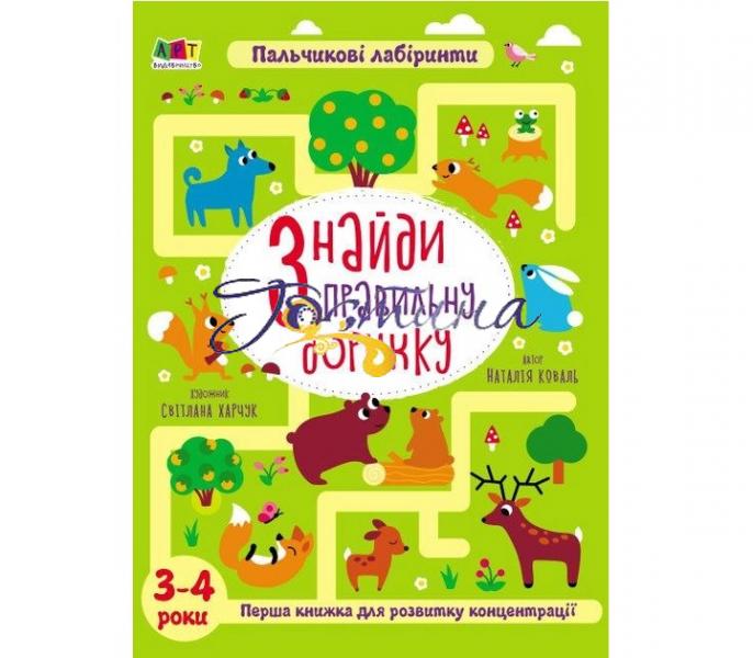 «Знайди правильну доріжку» — перша книжка для розвитку концентрації. Дитина проходить лабіринти, проводячи пальчиком по доріжкам. До кожного лабіринта є завдання: назвати тваринок, яких зустріне дорогою чи пропливатиме, сказати хто з них небезпечний. Під лабіринтами додаткові завдання: - на увагу й лічбу — потрібно відшукати запропонованих тварин, полічити їх та показати відповідну цифру; - на розвиток моторики руки — різні графомоторні доріжки, що допомагають підготувати руку до письма. Пізнавайте світ цікаво.