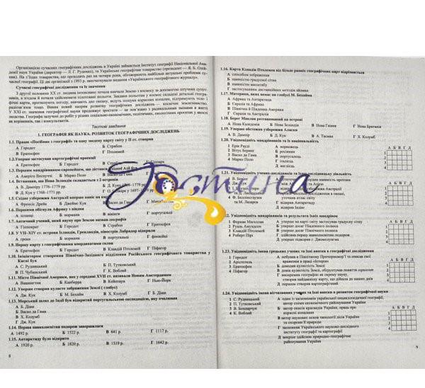 Посібник містить теоретичний матеріал, а також тестові завдання різного ступеня складності. Зміст матеріалів відповідає вимогам чинної програми зовнішнього незалежного оцінювання та чинних навчальних програм з географії.