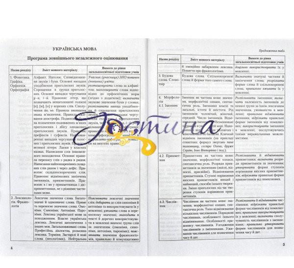 Збірник містить теоретичний матеріал, завдання в тестовій формі різного рівня складності з української мови та літератури, а також перелік слів з нормативним наголосом.
