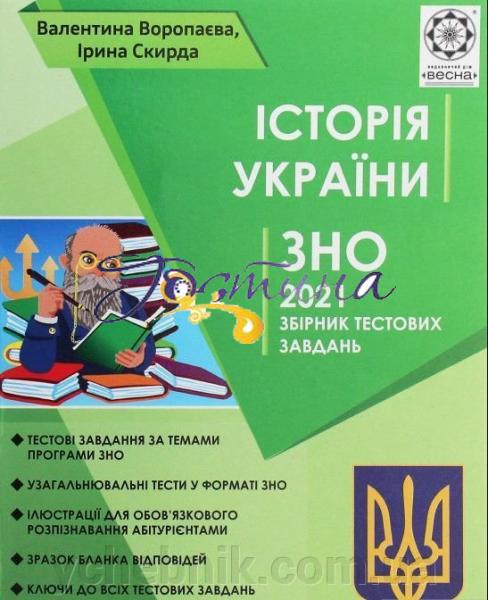 У збірнику тестових завдань є тести до кожної теми з 24 завдань та 8 узагальнювальних тестів у форматі ЗНО (6 із них та ілюстрації для розпізнавання абітурієнтами розміщено на сайті видавництв) Їх можна подивитись, якщо перейти за посиланням ( https://vesna-books.com.ua/zno_uzagal_testu_ist_ukr.)
