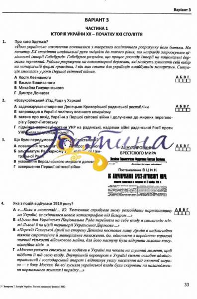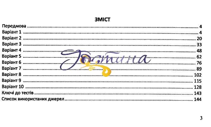 Мета посібника — допомогти учням у підготовці до успішного складання ЗНО та ДПА з історії України. Збірник містить 10 варіантів по 60 тестових завдань, розроблених за специфікацією тесту з історії України УЦОЯО. Зміст, структура та формат завдань аналогічні тим, що пропонуються на ЗНО. Ця книжка створена для того, щоб ви змогли самостійно підготуватися та успішно скласти зовнішнє незалежне оцінювання (ЗНО) та державну підсумкову атестацію (ДПА) з історії України. Пропонований посібник містить матеріал для формування практичних умінь виконувати тестові завдання у форматі ЗНО та для закріплення набутих знань. Тест з історії України складається з двох частин.