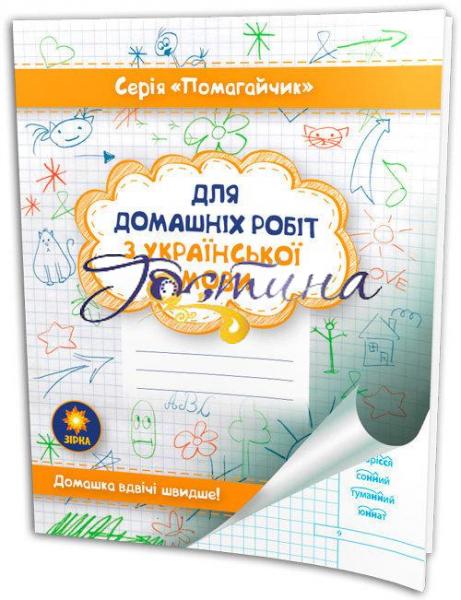 «Помагайчик» оформлений як зошит, на полях якого розміщена найнеобхідніша для молодшогошколяра інформація з української мови: спрощення, чергування, правило дев’ятки, написання числівників, закінчення усіх відмін, орфограми та винятки. За допомогою цього зошита школяр згадає, як визначати частини мови та підкреслювати частини речення.