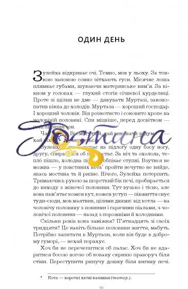 Ґузель Яхіна (1977) — молода й талановита письменниця татарського походження, роман якої «Зулейха відкриває очі» нагороджений кількома вагомими для літературного світу преміями. У 1930-ті роки червоний терор розкуркулення добряче пройшовся нашою землею. Не оминув він і маленького татарського селища. Працьовита і вродлива жінка Зулейха, яка дотримувалася коранічних приписів і в усьому корилася чоловікові, прислужувала злостивій свекрусі, нині гнана червоним терором на край світу, де змушена починати життя знову і брати на себе відповідальність за власну долю і долю щойнонародженого сина. «Зулейха відкриває очі» — це книга про людську душу, що не скорилася всім зламам, які на неї чатують, і про неймовірну любов, яка розквітає в пекельних муках у забутому Аллахом клаптику тайги десь на Ангарі.